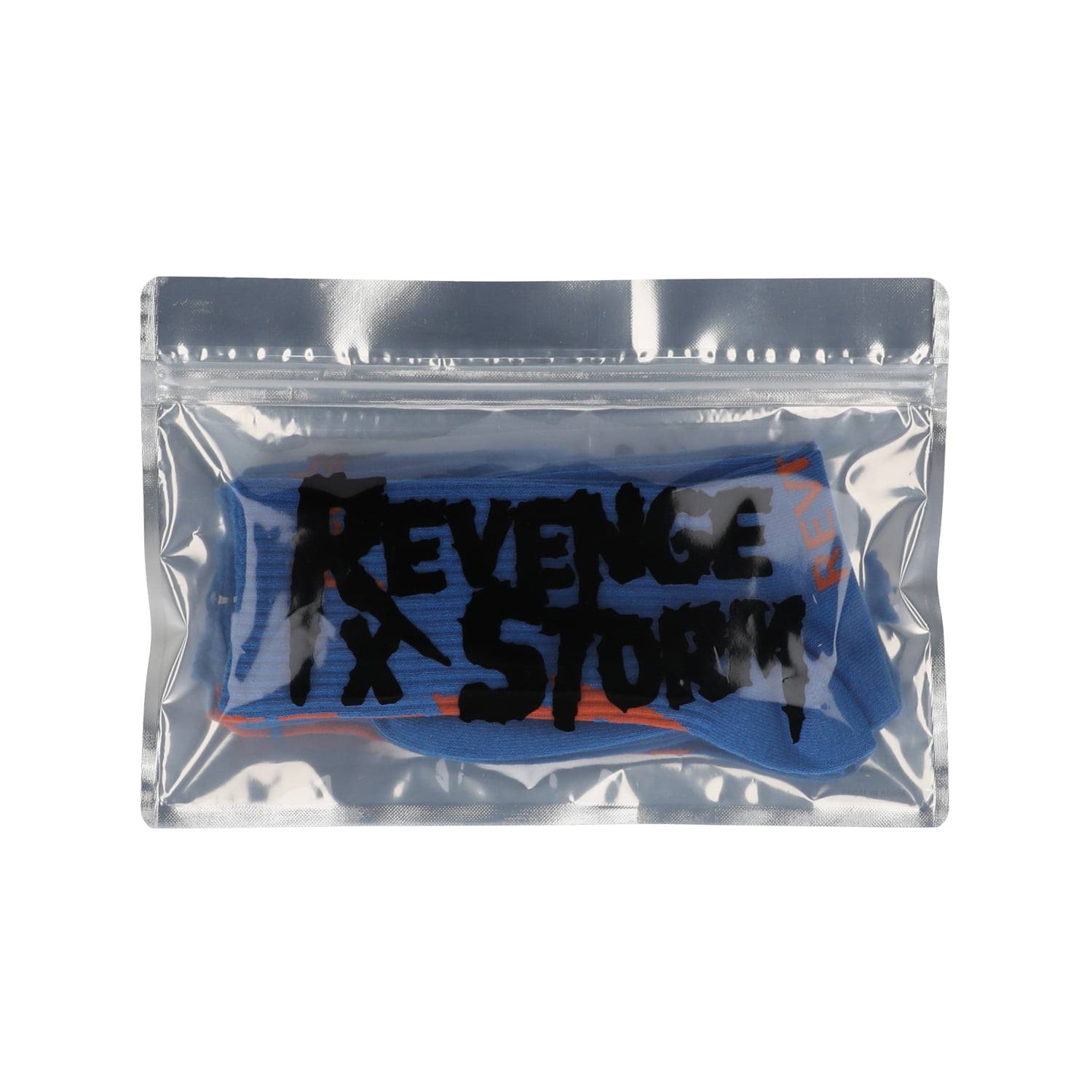 REVENGE X STORM 定番のオリジナルソックスは、ブランドアイコンのロゴがポイント。夏スタイルのアクセントにも最適です。