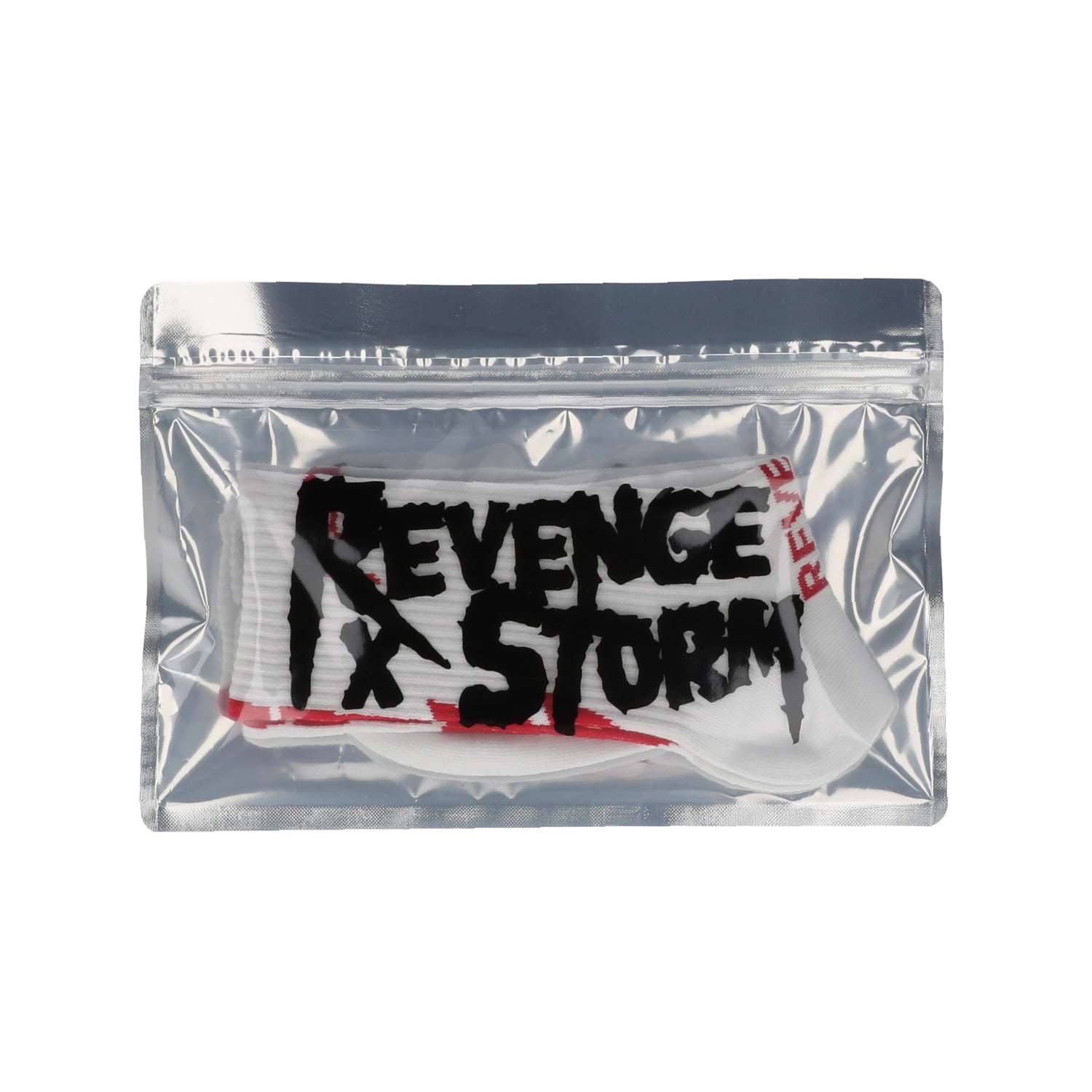 REVENGE X STORM 定番のオリジナルソックスは、ブランドアイコンのロゴがポイント。夏スタイルのアクセントにも最適です。